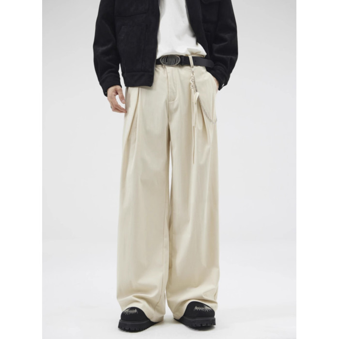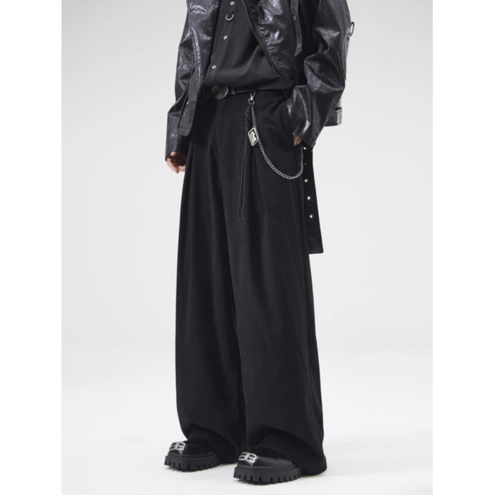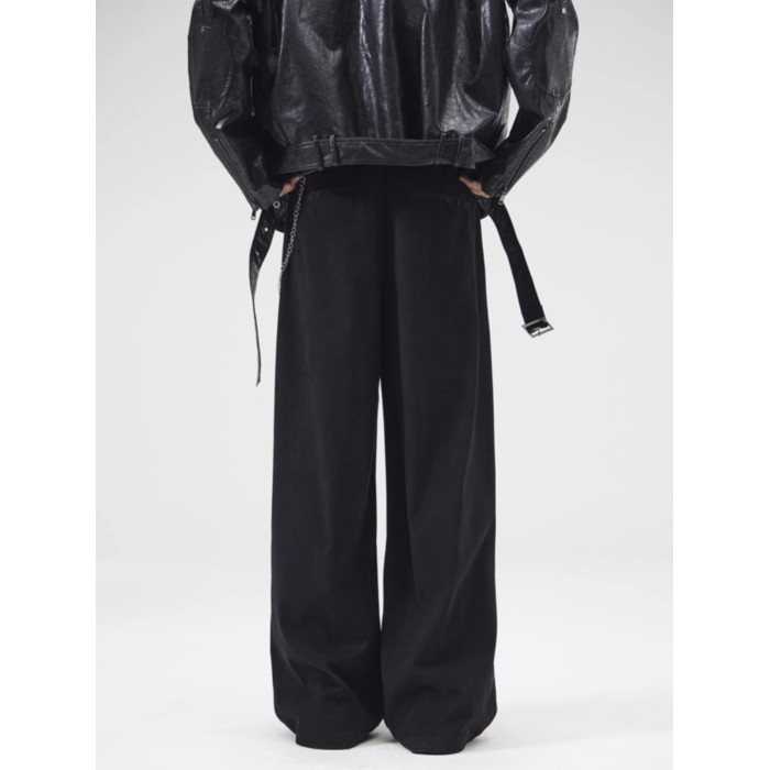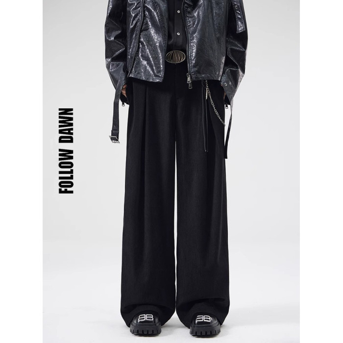 休閒西褲男春季2025新款潮牌寬松垂感拖地濶腿褲黑色長褲子