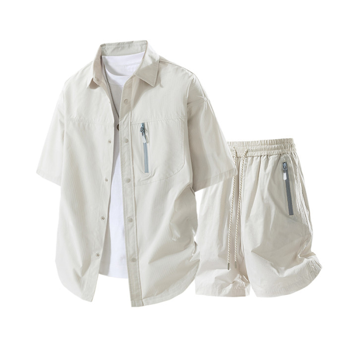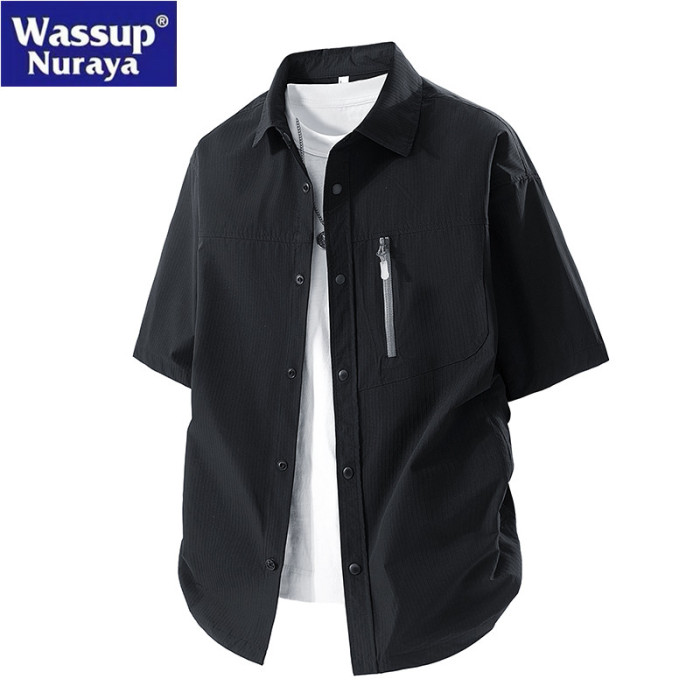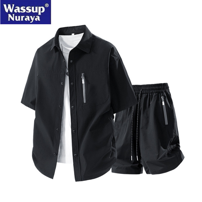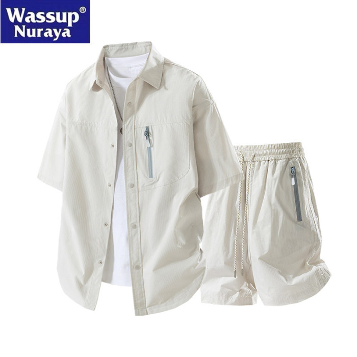 WASSUP Nuraya潮牌冰絲襯衫一整套夏新款短袖短褲休閒兩件套裝男