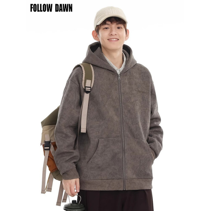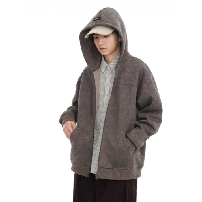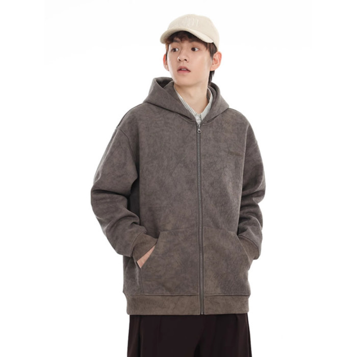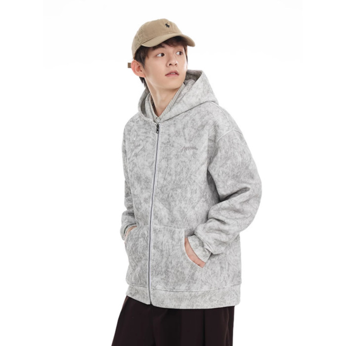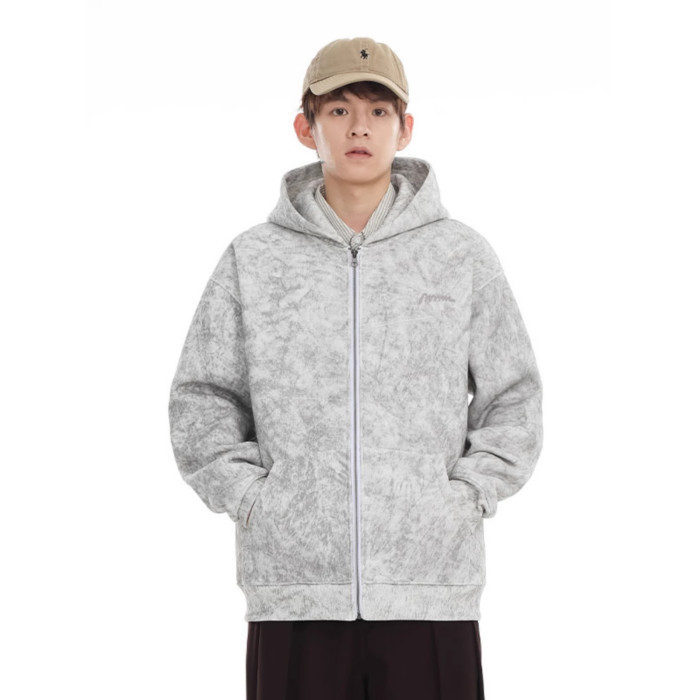 美式重磅紥染連帽衛衣男秋季新款潮牌拉鍊開衫寬松休閒外套