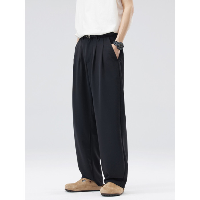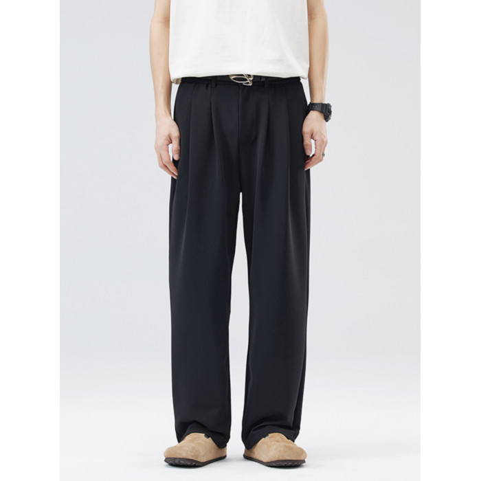 直筒垂感休閒黑色西褲男生夏季薄款寬松濶腿長褲2025年新款
