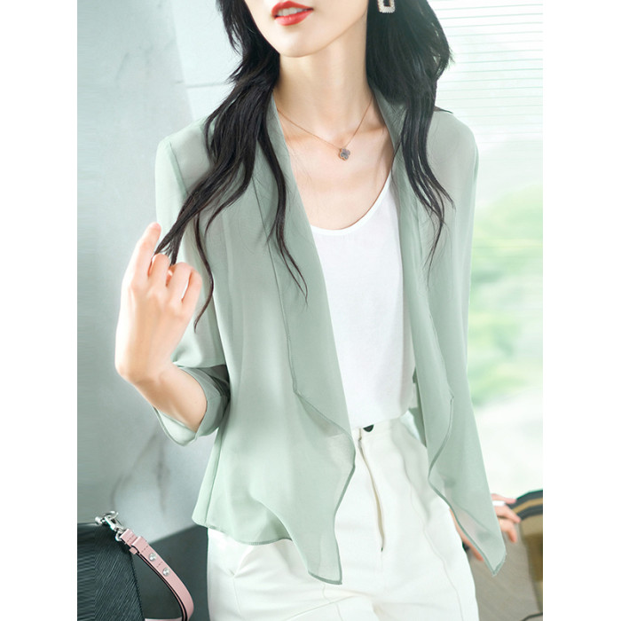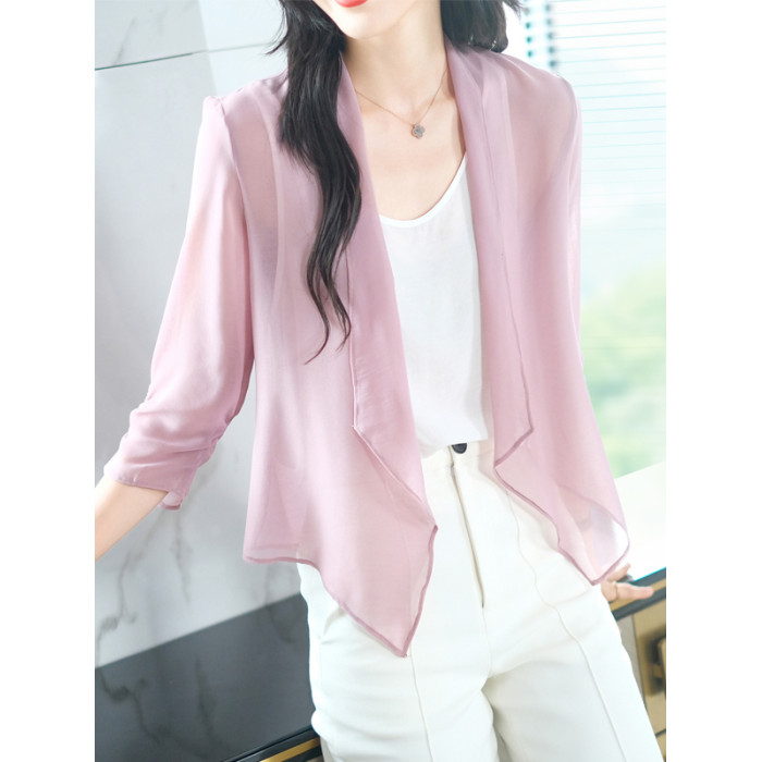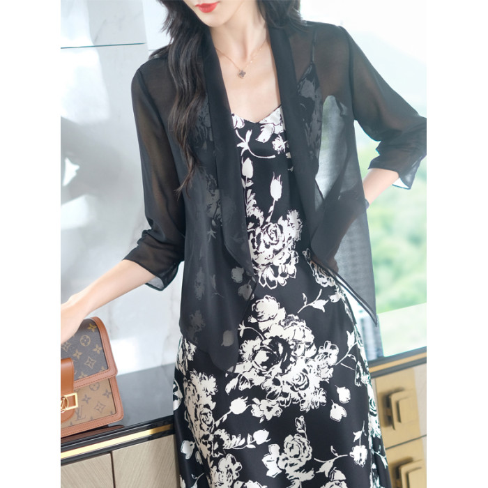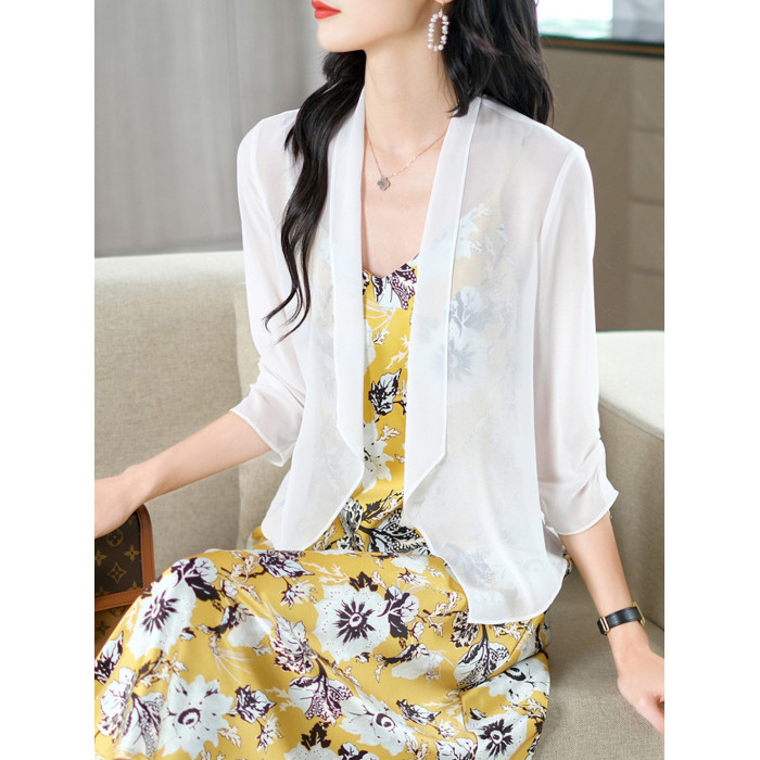 防曬衣女短款夏季新款桑蠶絲開衫披肩配吊帶裙子外搭薄款坎肩外套