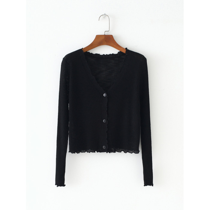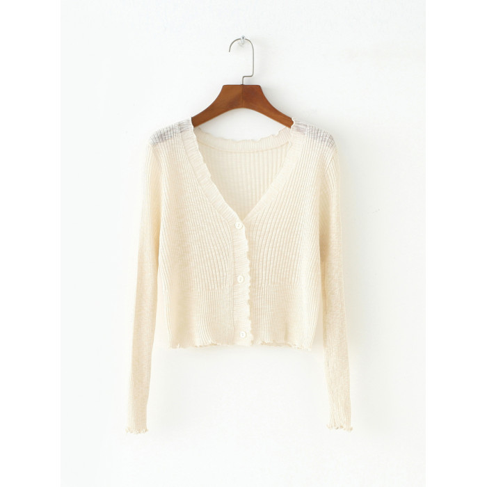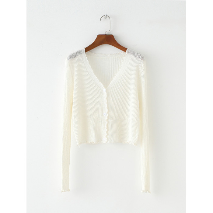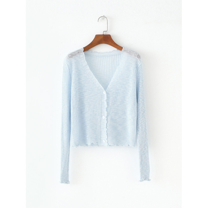 2023夏季新冰絲小清新法式薄款木耳邊針織蕾絲防曬衣外搭開衫上衣