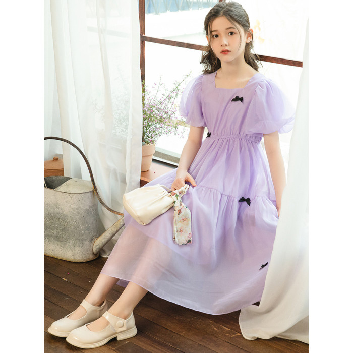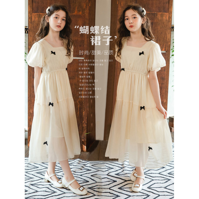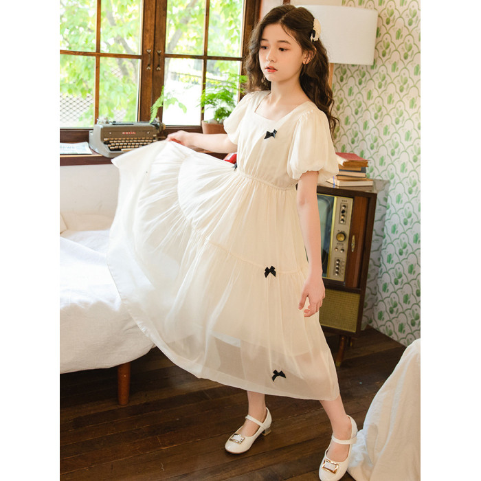 女童夏裝連衣裙夏季2025新款7短袖兒童雪紡裙子8女孩洋氣長裙10嵗