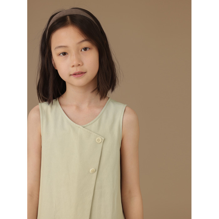 哈齒童裝兒童淺綠色無袖背心裙女孩夏裝設計感裙子女童連衣裙洋氣
