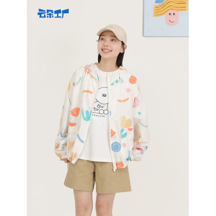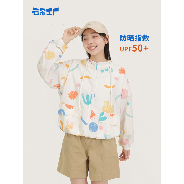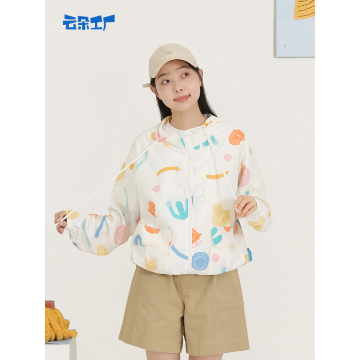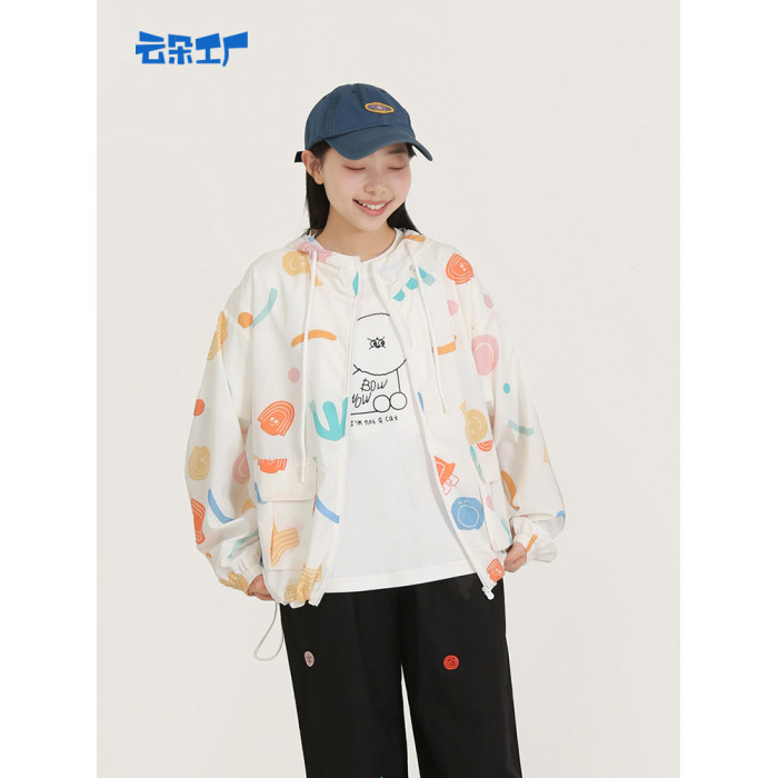 雲朵不打小孩印花防曬外套女夏季新款戶外遮陽防曬衣戶外穿搭