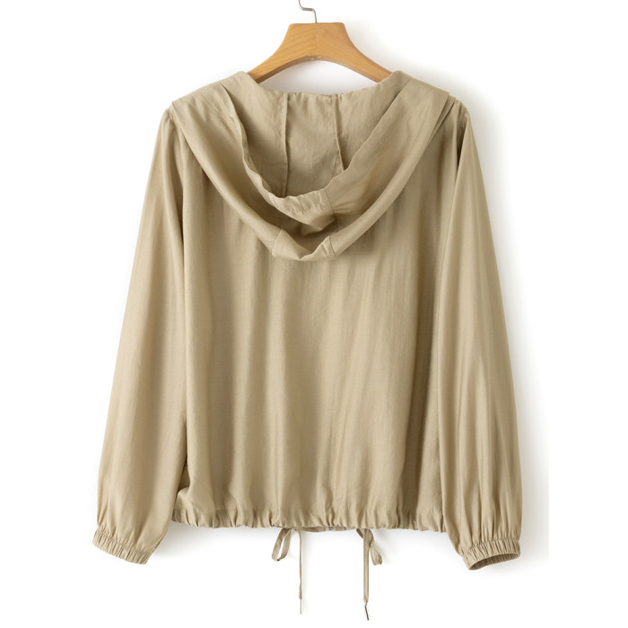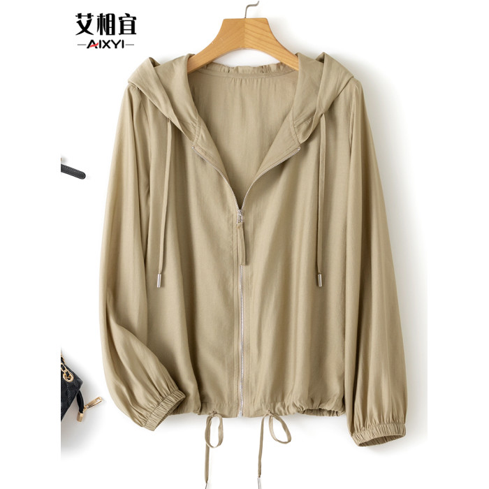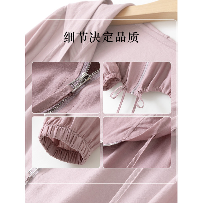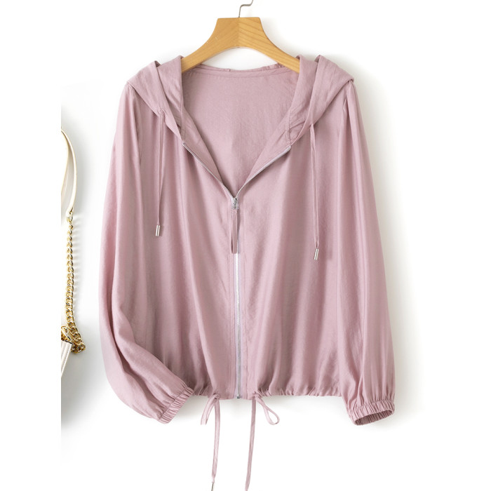 春夏輕薄透氣棉感單層連帽防曬衣襯衫女2025寬松顯瘦通勤開衫上衣