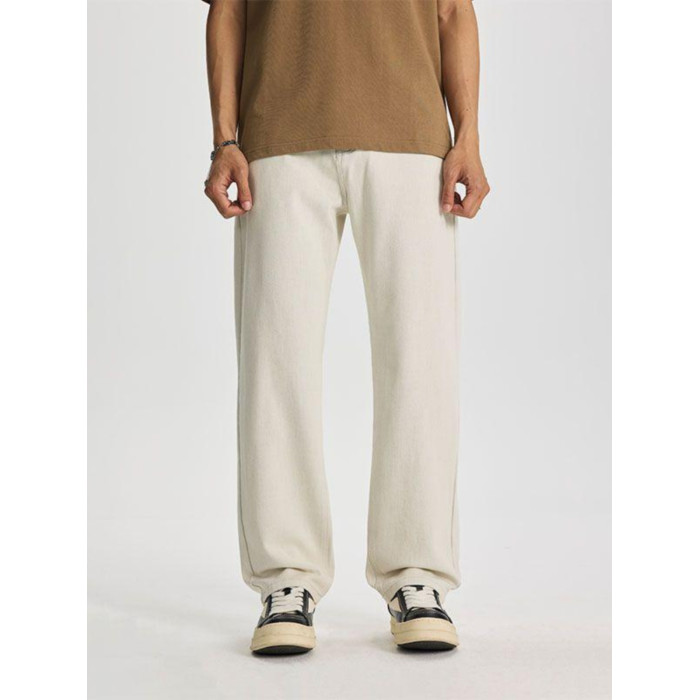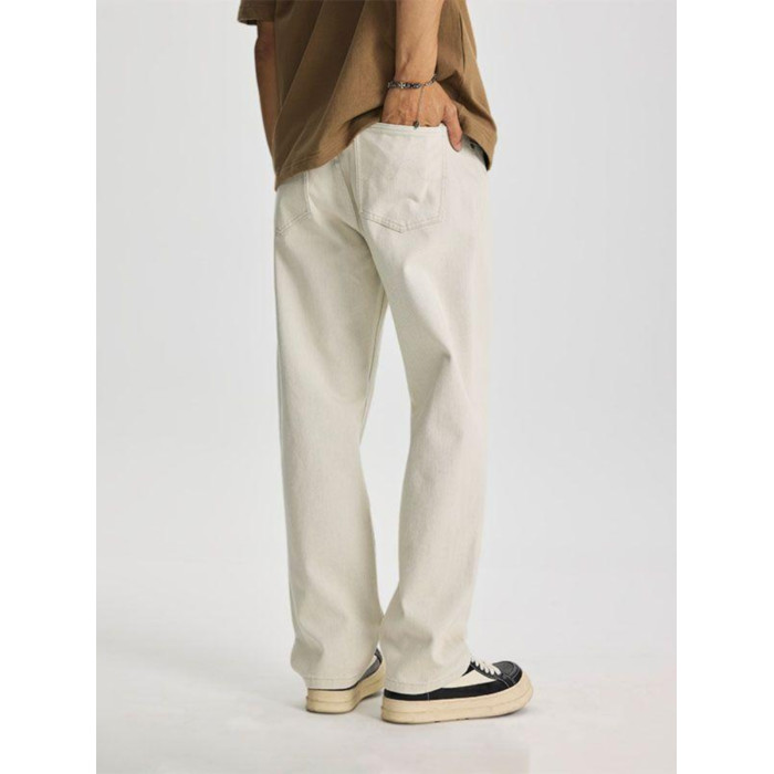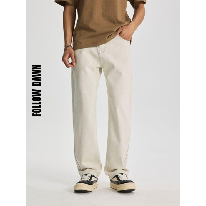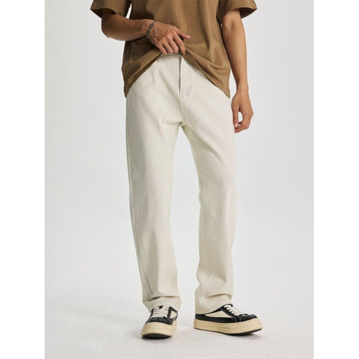 乳白色牛仔褲男2025春季新款美式高街vibe風潮牌痞帥寬松直筒褲
