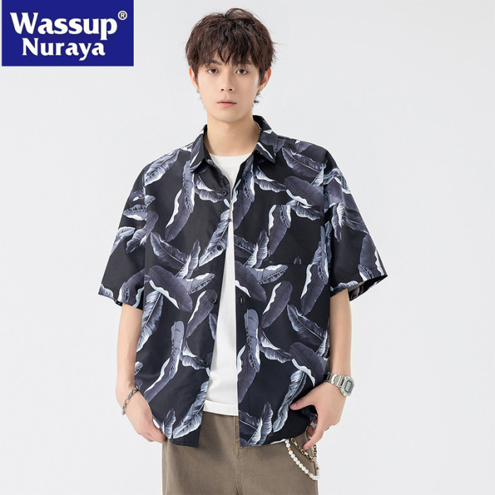 WASSUP NURAYA夏威夷沙灘襯衫短袖夏季寬松痞帥情侶度假休閒襯衣