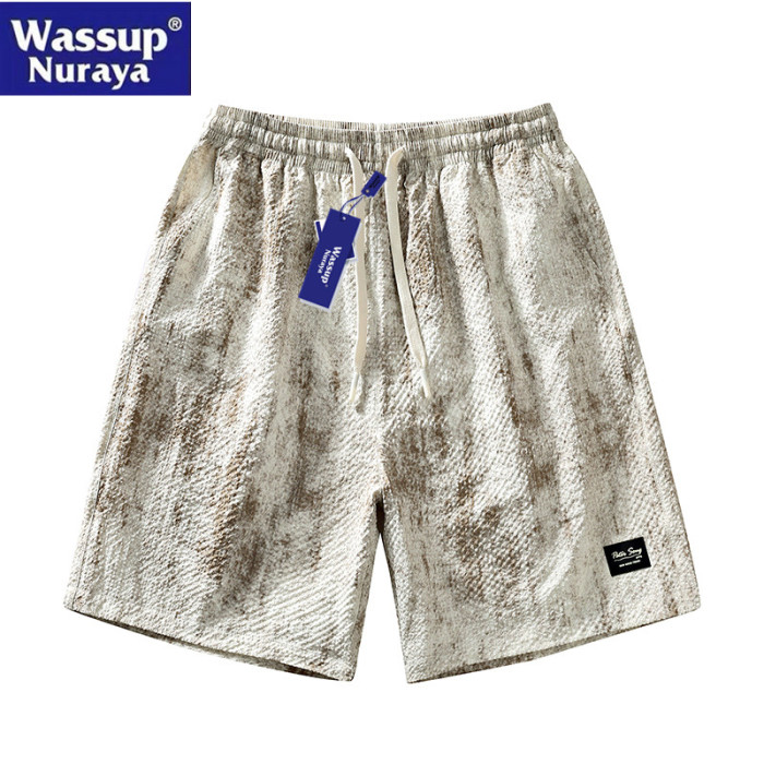 WASSUP Nuraya潮牌夏冰絲速乾寬松休閒短褲男紥染沙灘五分運動褲