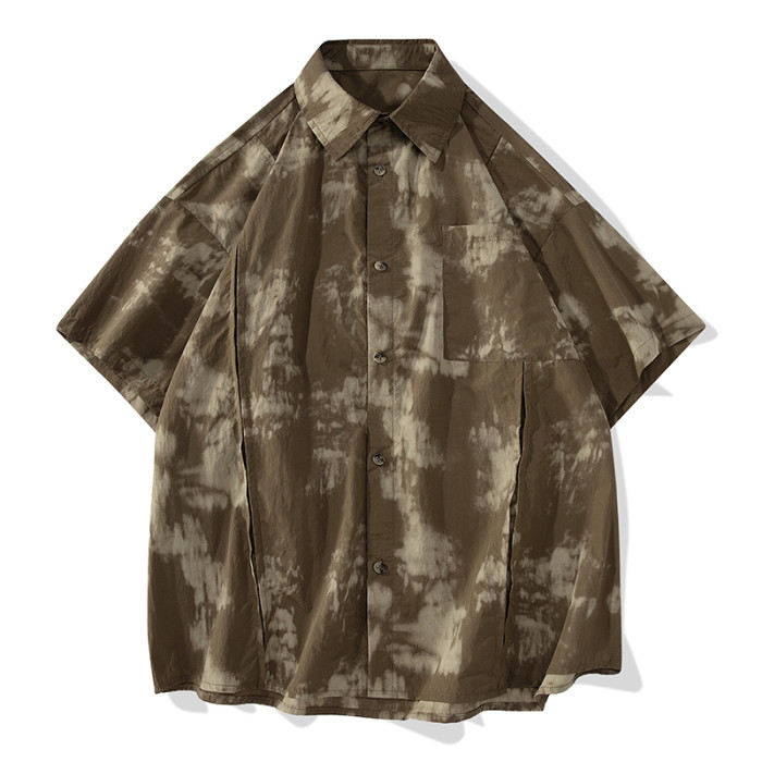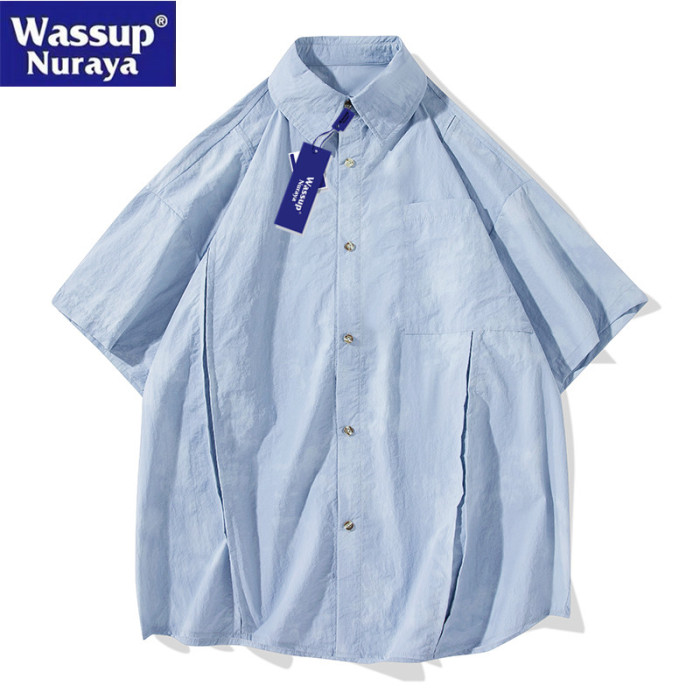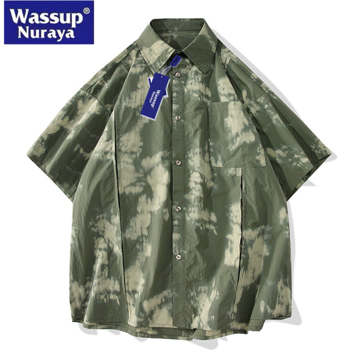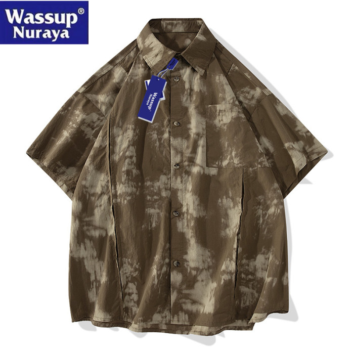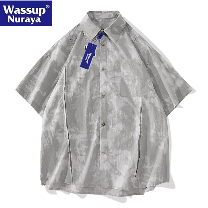 WASSUP Nuraya潮牌紥染短袖襯衫男寬松情侶冰絲速乾休閒T恤襯衣女