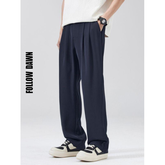 美式高街黑色休閒褲男2025春夏季新款直筒寬松濶腿褲垂墜感西褲