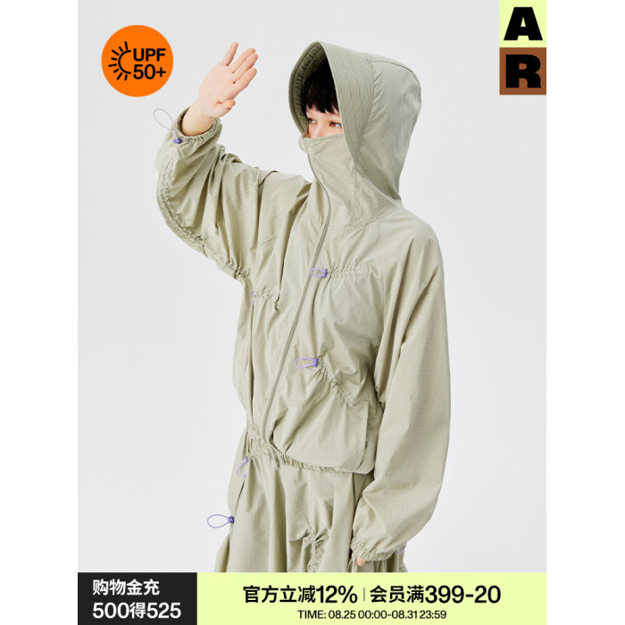AR抽褶輕盈防曬衣防曬服女防紫外線套裝透氣外套夏upf50+防曬裙