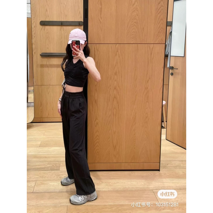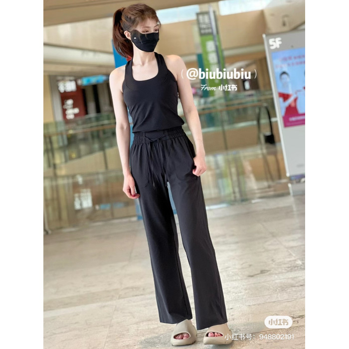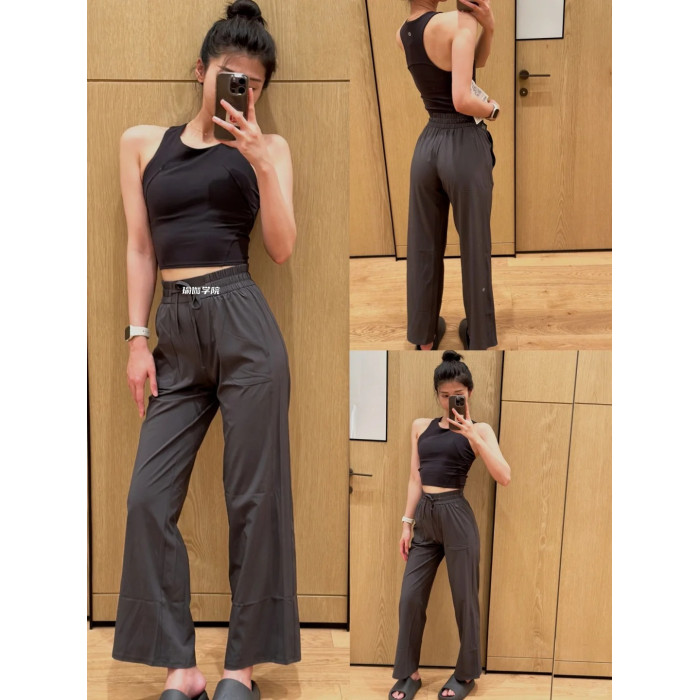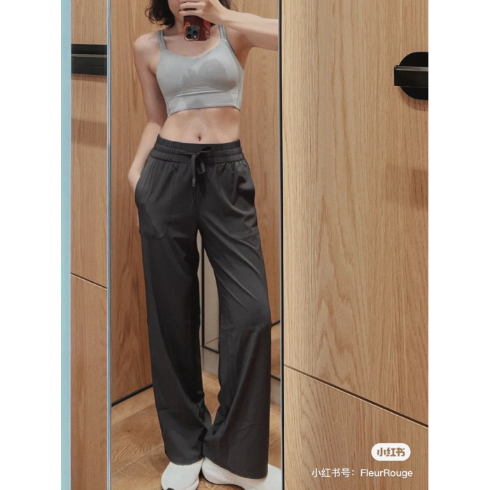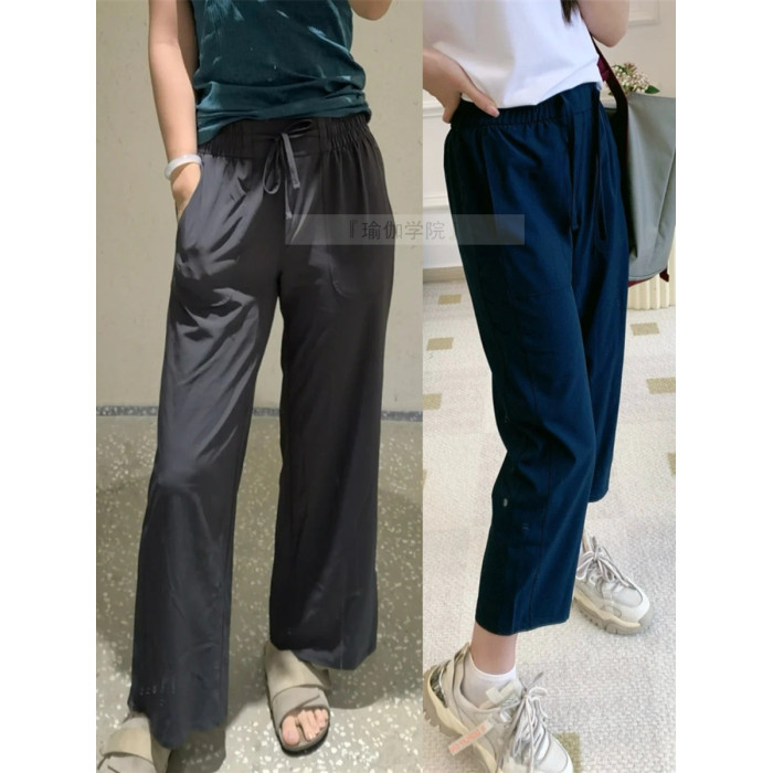 濶腿褲女28寸寬松速乾pull on透氣抽繩23七分微彈瑜伽直筒褲