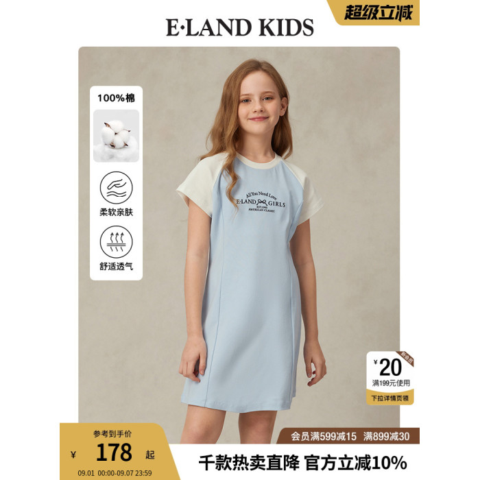【100%棉】eland kids衣戀童裝女童連衣裙25年夏季新品學院風裙子