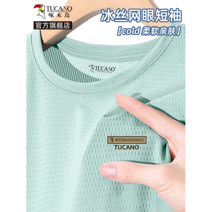 啄木鳥冰絲t恤男夏季2025新款寬松大碼潮牌短袖男士速乾運動半袖Y
