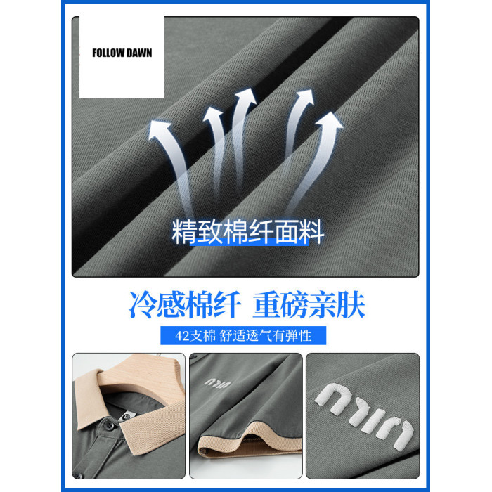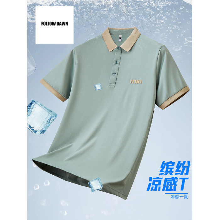 冰絲長絨棉短袖男士POLO衫夏季新款簡約翻領撞色T恤衫男