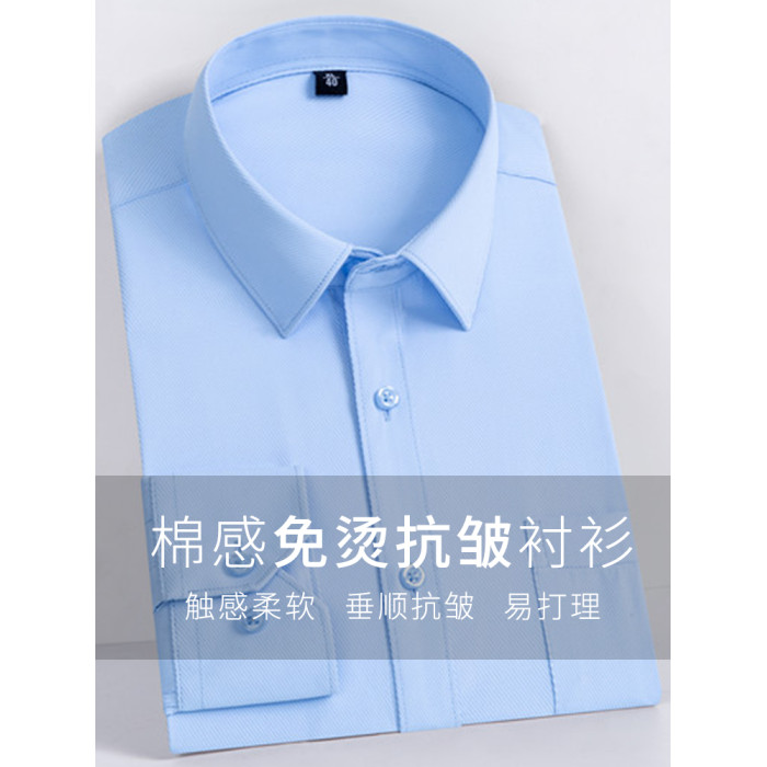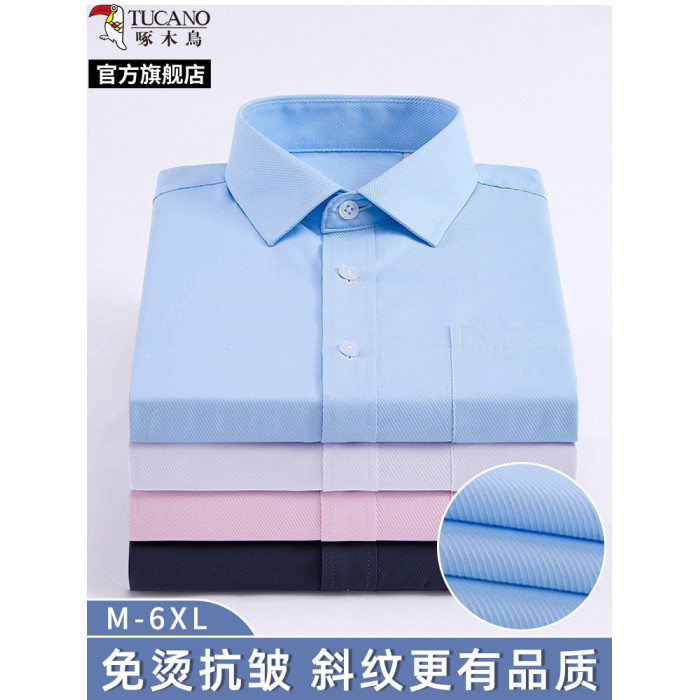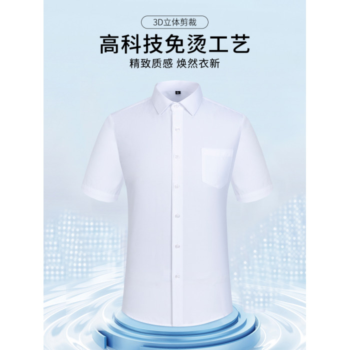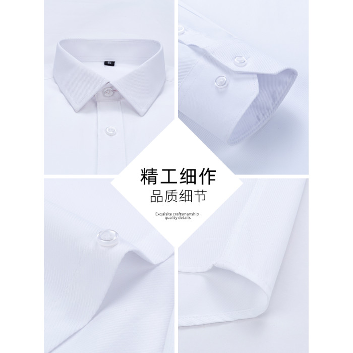 【長絨棉】啄木鳥白色襯衫男士短袖夏季商務工裝斜紋秋季長袖襯衣