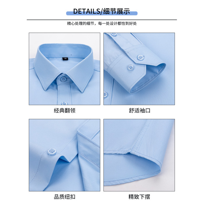 啄木鳥男士襯衫短袖結婚伴郎男免燙抗皺商務秋季白色長袖爸爸襯衣