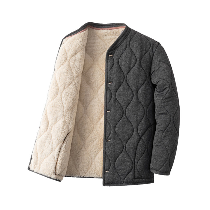 啄木鳥冬季男士新款羊駝絨棉服中老年保暖外套爸爸裝內膽小棉襖C