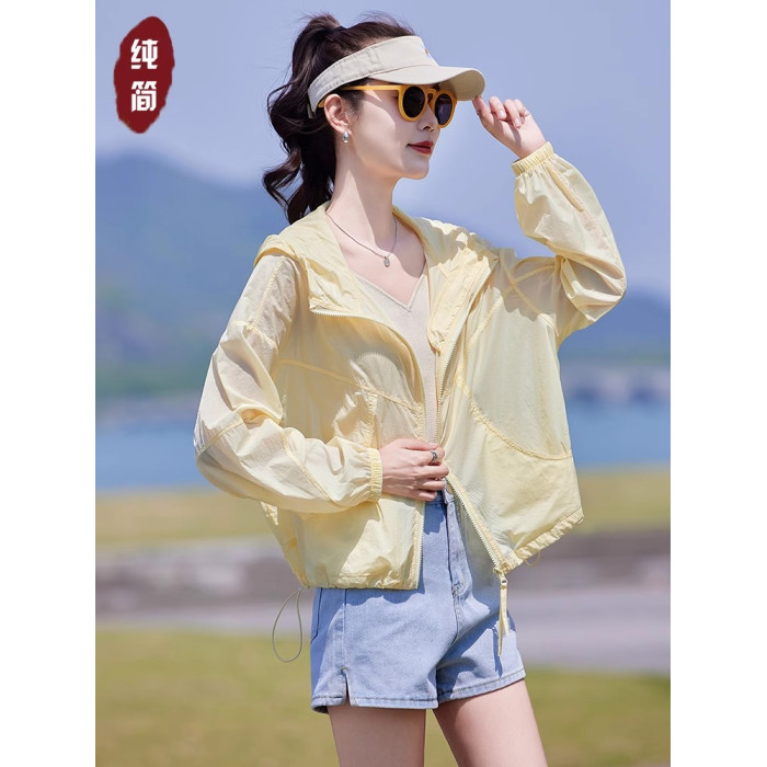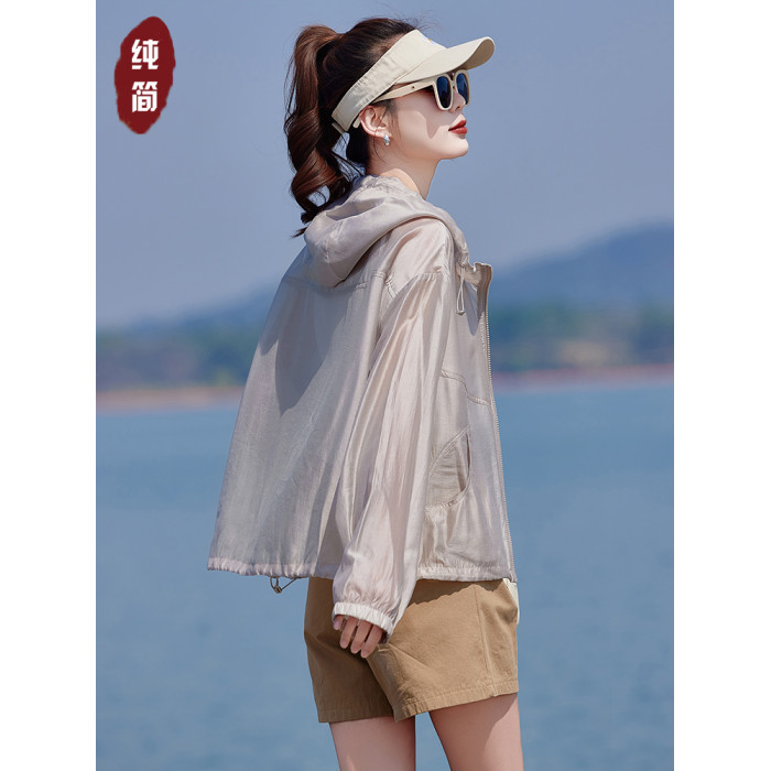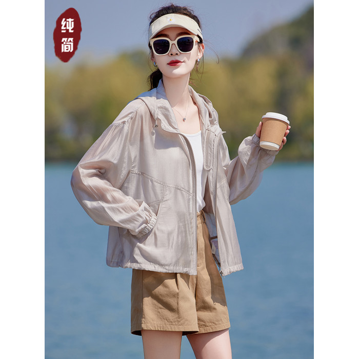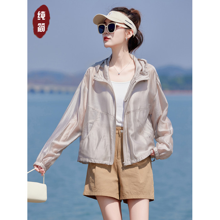 輕薄透氣天絲防曬衣女2025夏季新款百搭小個子短款戶外連帽防曬服
