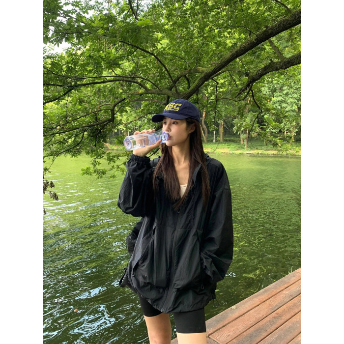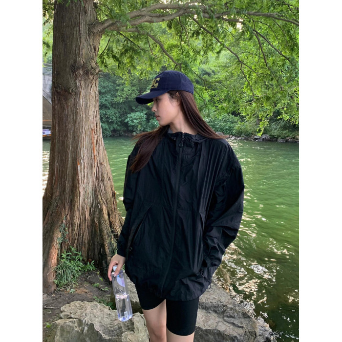 黑色防曬衣女2025夏季新款戶外山系寬松輕薄透氣防紫外線防曬服潮