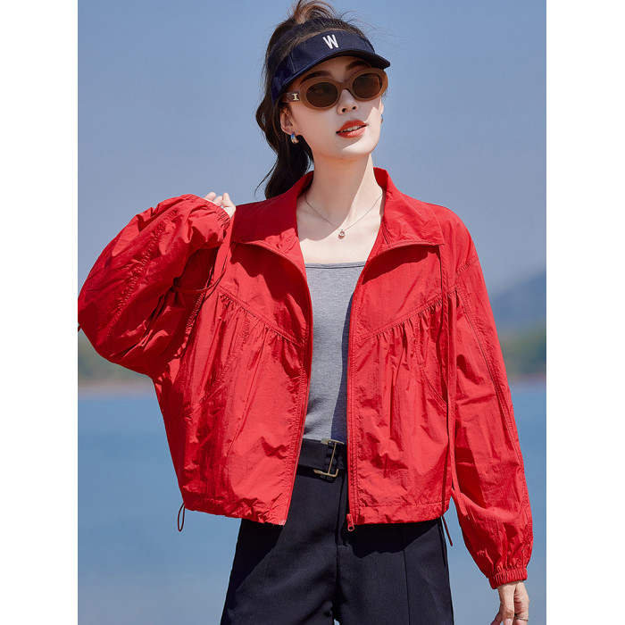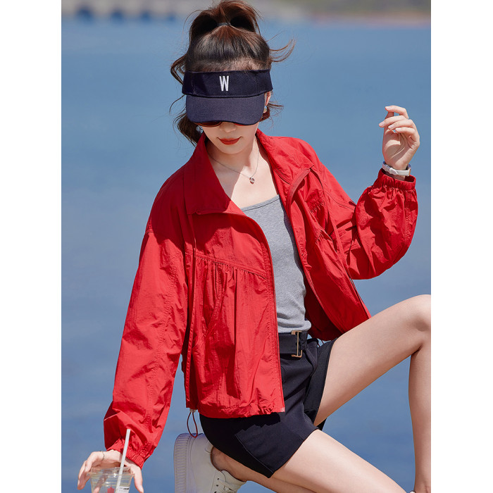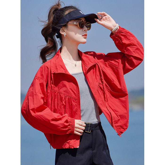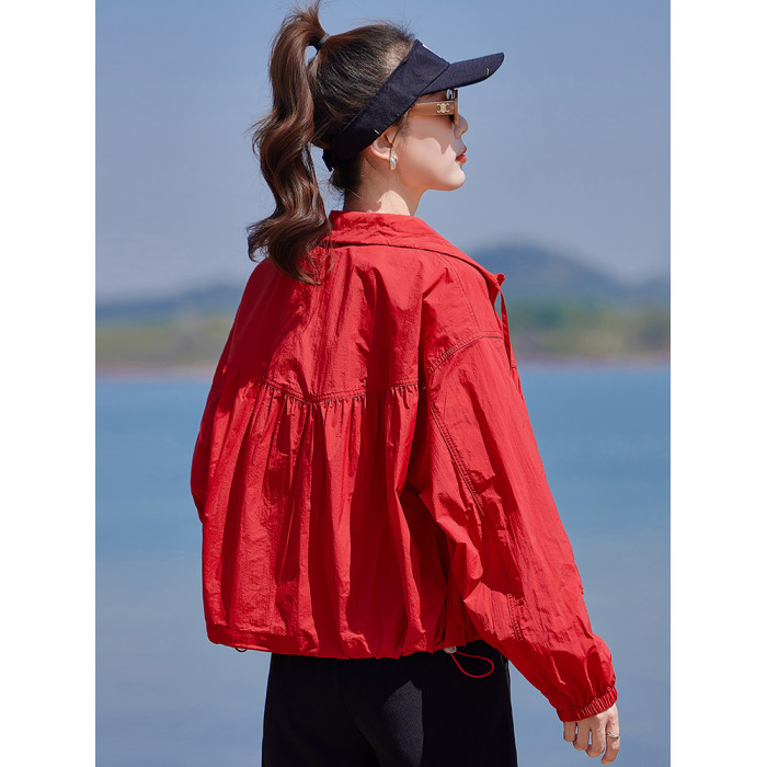 紅色防曬衣女薄款短外套女夏季2025新款小個子時尚透氣防曬服上衣
