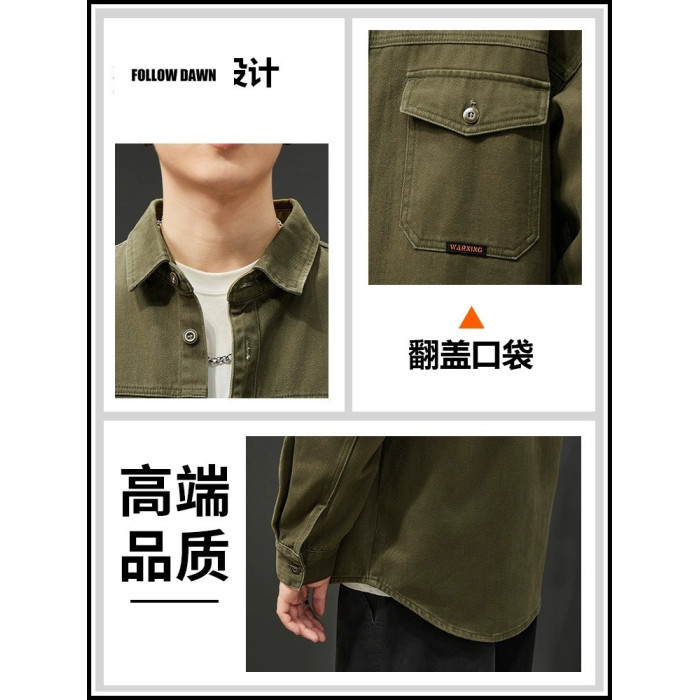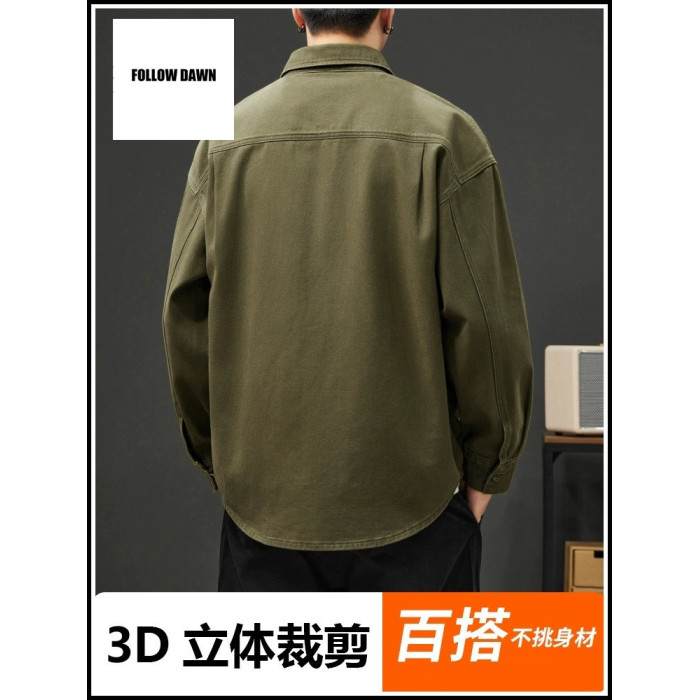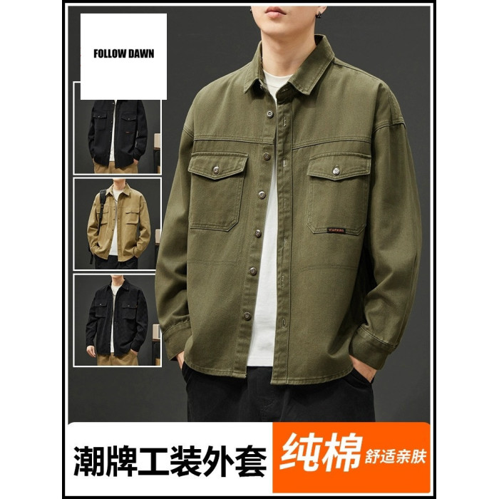 春秋季痞帥工裝襯衫外套男士潮流純棉美式上衣休閒男裝襯