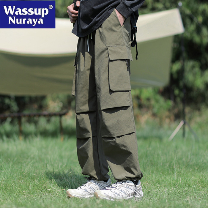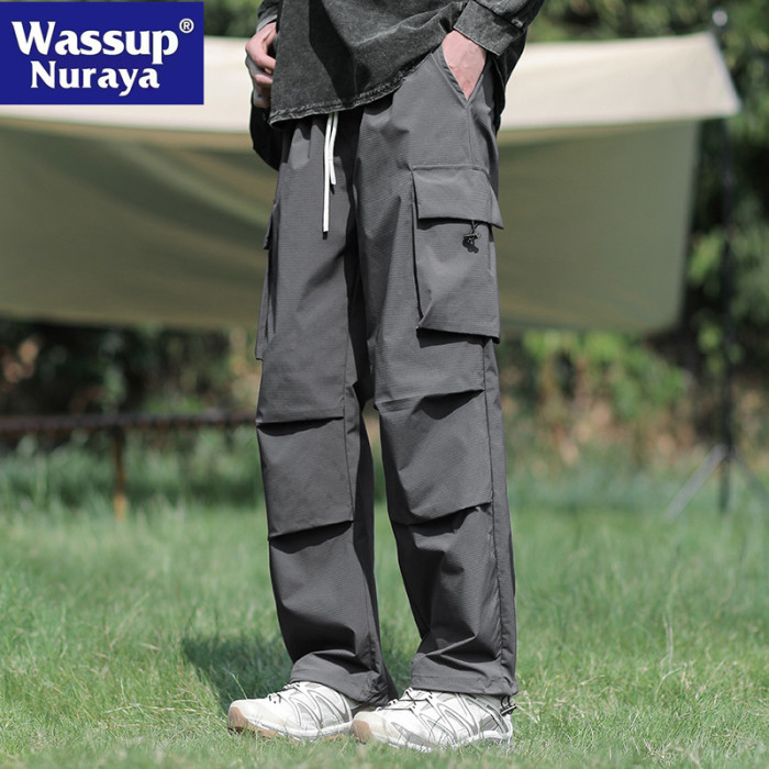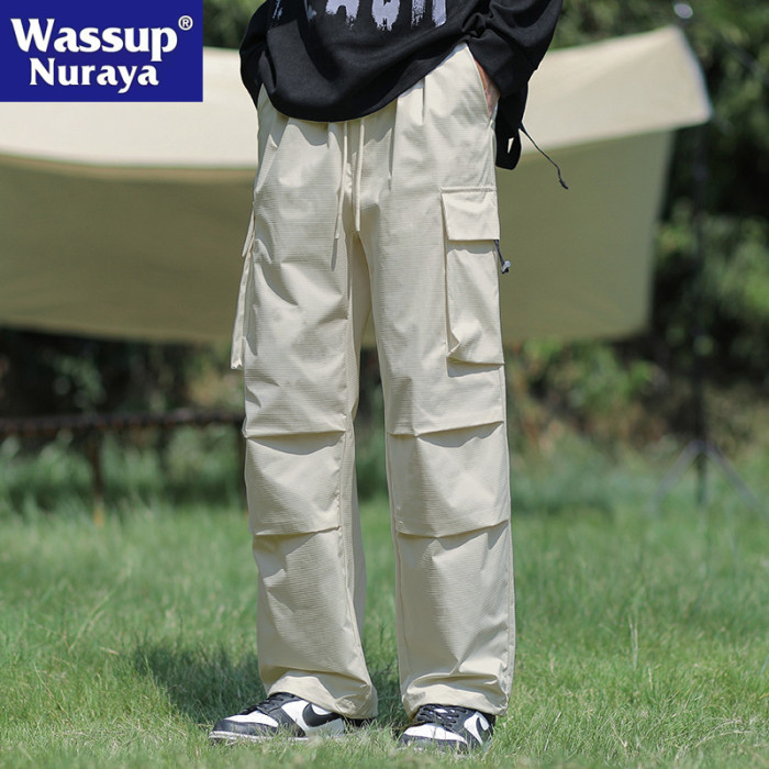 WASSUP NURAYA美式繖兵工裝褲男春秋潮牌寬松速乾濶腿直筒休閒褲