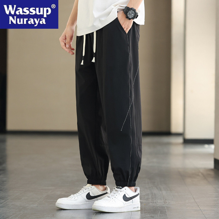 WASSUP NURAYA褲子夏季休閒褲薄款九分褲寬松褲大碼青年冰絲男褲