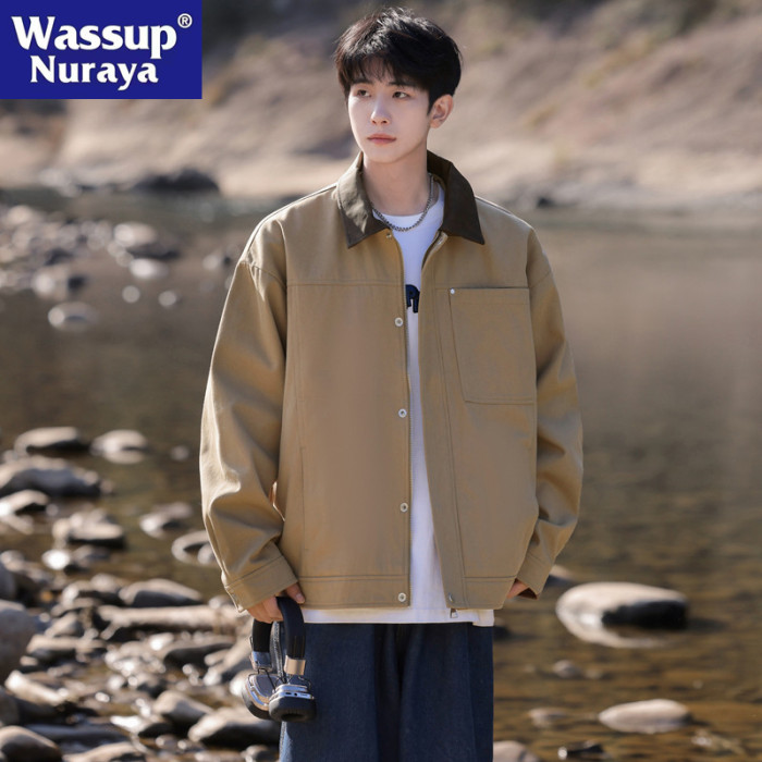 WASSUP NURAYA春秋翻領夾克男美式復古寬松潮牌純棉休閒工裝外套