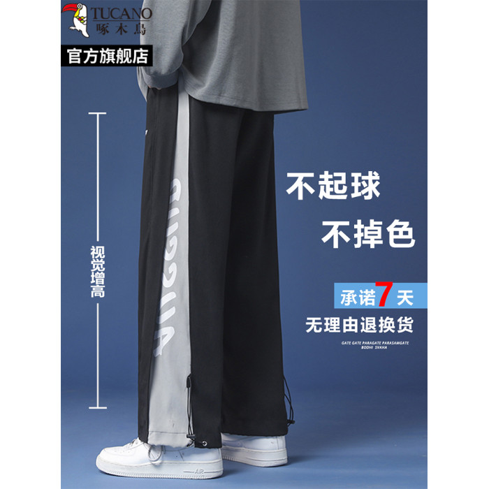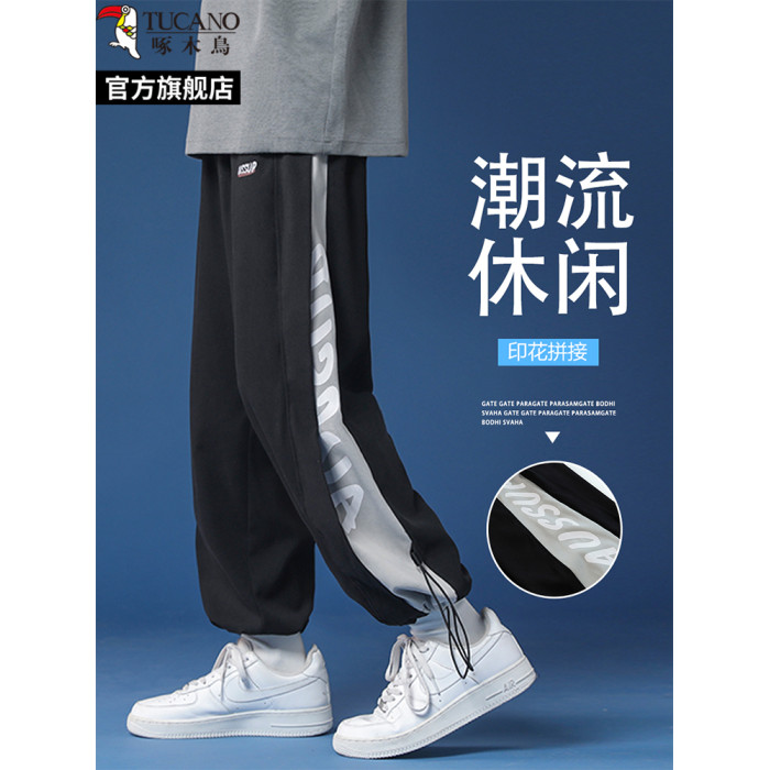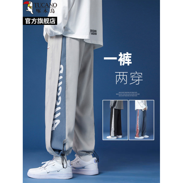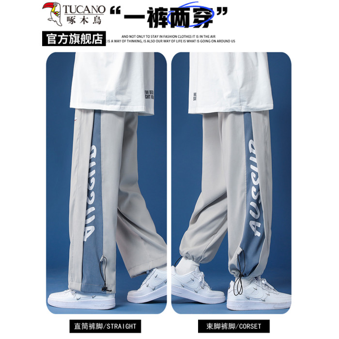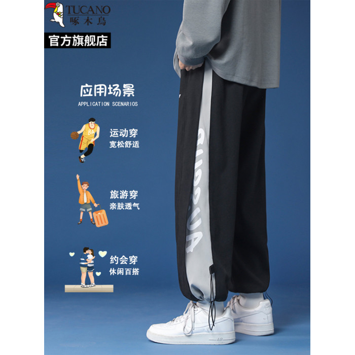 啄木鳥2025春夏季薄款抽繩束腳休閒褲子男士大碼直筒寬松運動長褲
