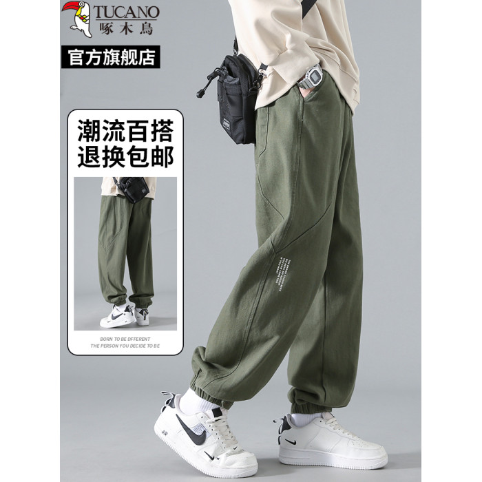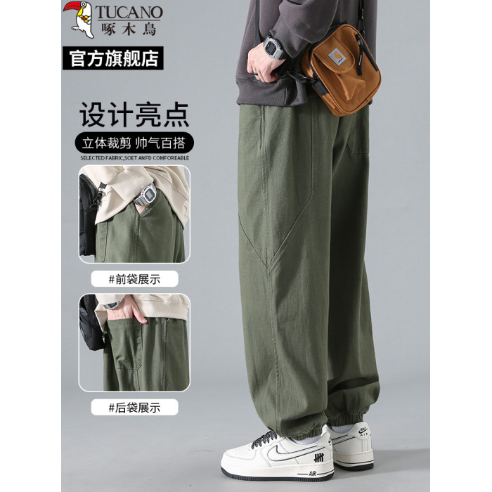 啄木鳥官方2025夏季薄款美式束腳工裝褲子男士運動束腳褲休閒長褲