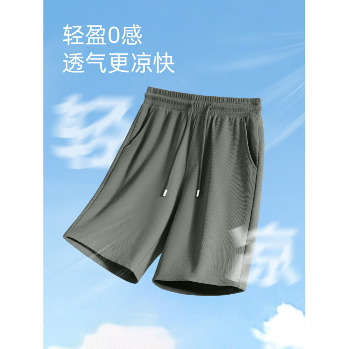 啄木鳥男士短褲夏季2025新款華夫格寬松垂感休閒運動五分褲薄款Y