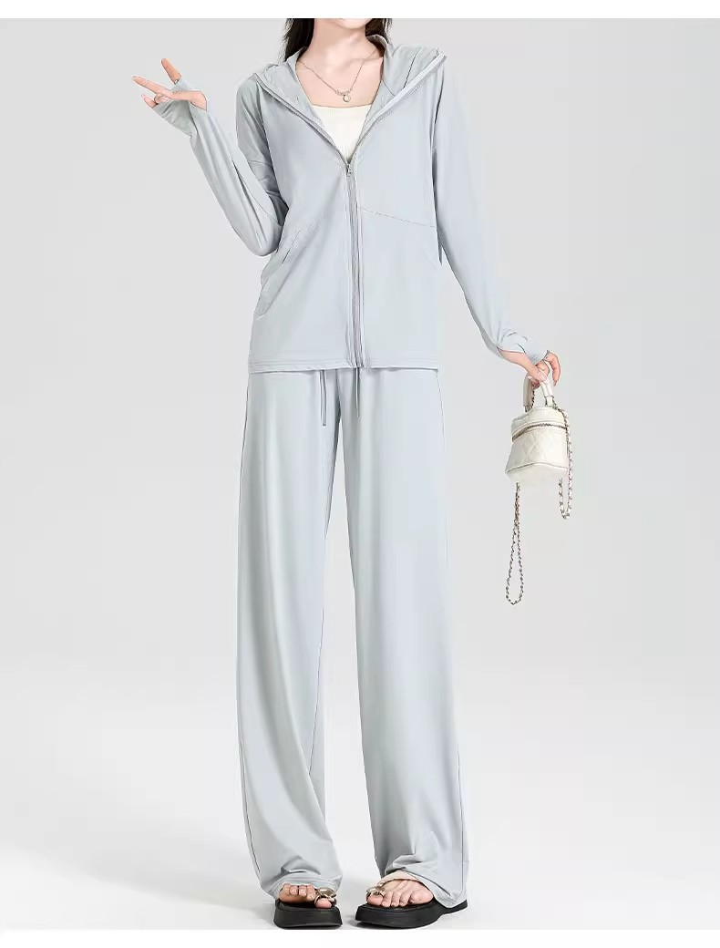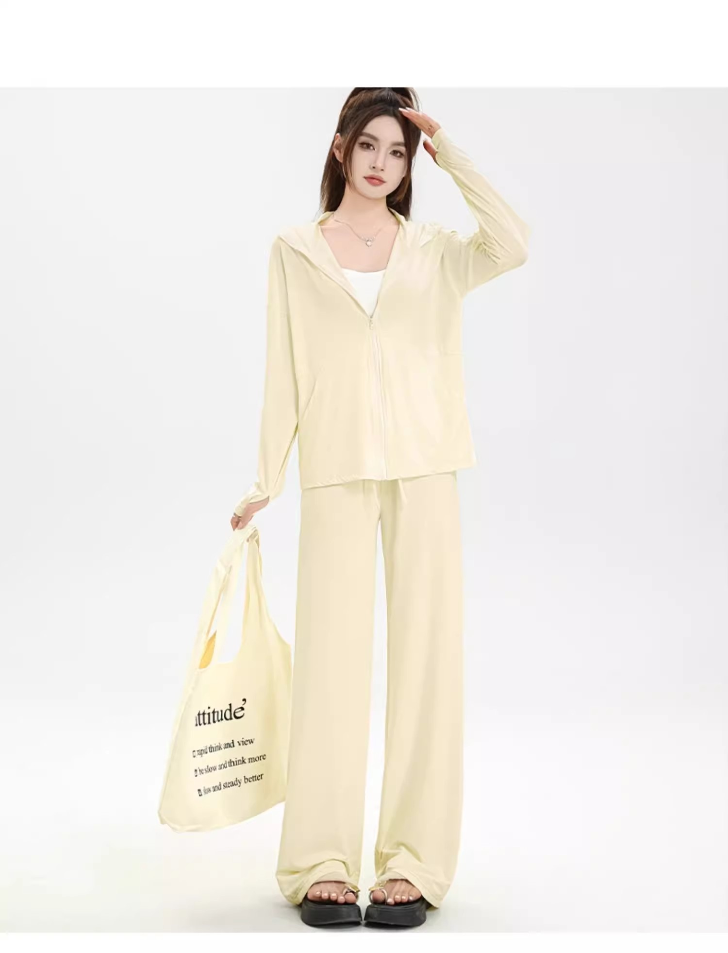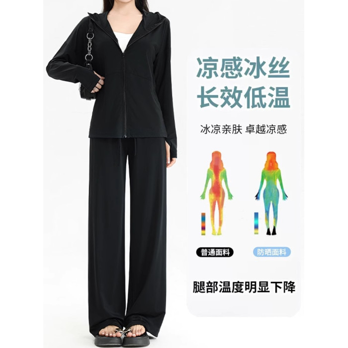 英國NextRoad冰絲防曬衣女夏寬松防曬襯衫薄款輕奢高級感冰絲套裝