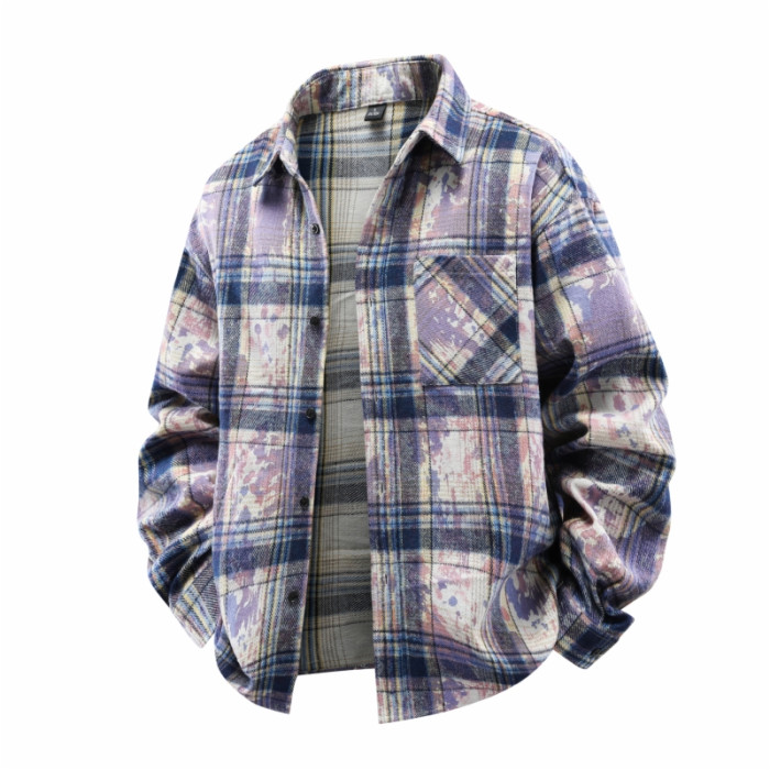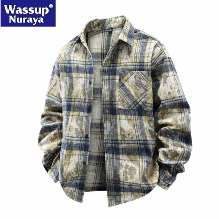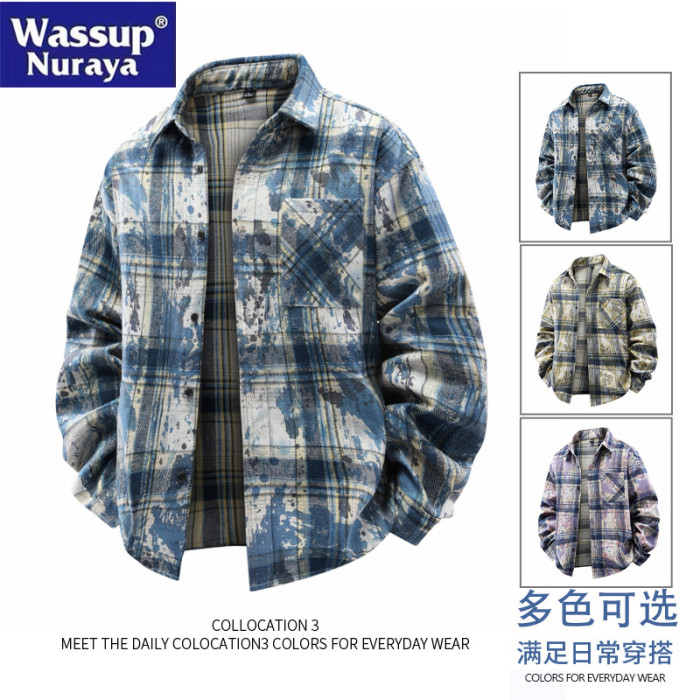 WASSUP Nuraya潮牌紥染格子襯衫男長袖春秋格紋襯衣百搭休閒外套