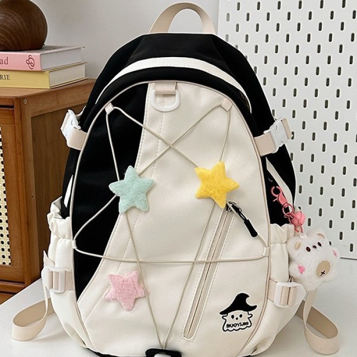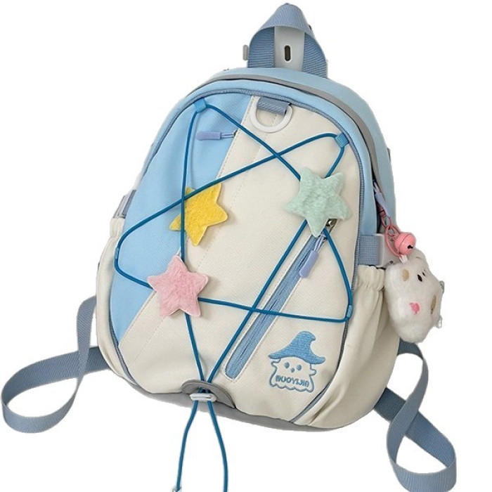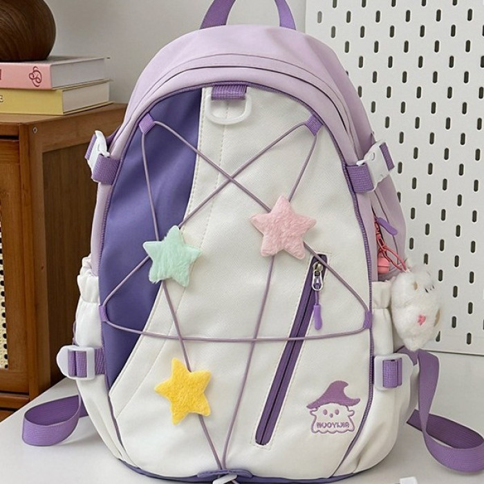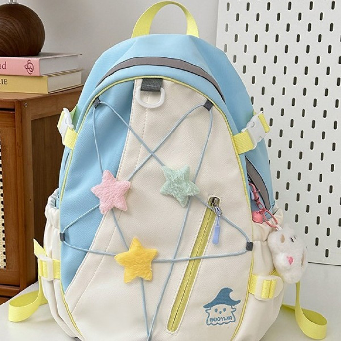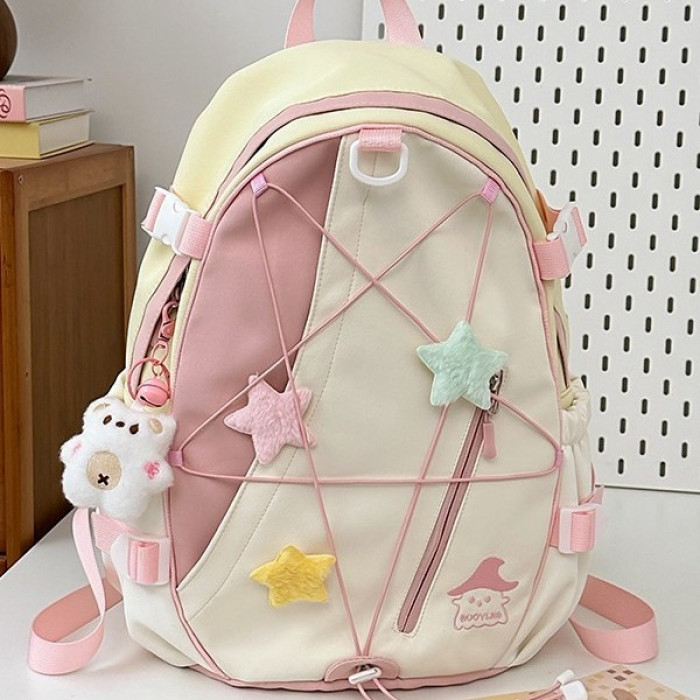 可愛小清新撞色書包女初高中學生雙肩包大容量可愛輕便後背包