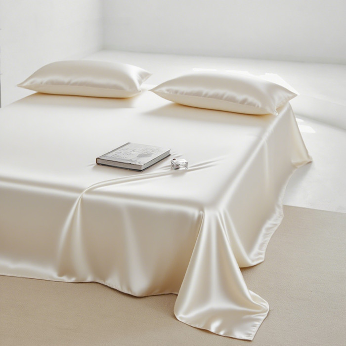 高級感水洗真絲床單單件夏季冰絲床笠絲滑裸睡絲綢被單枕套三件套