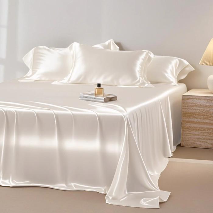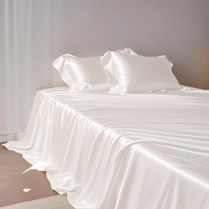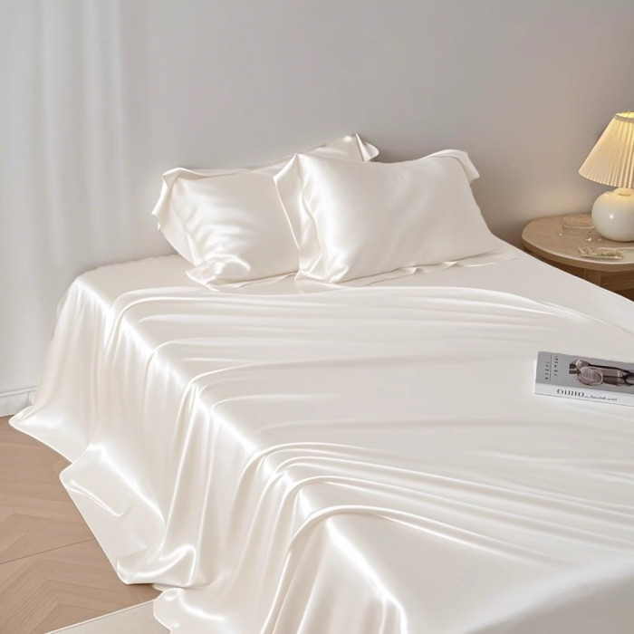 高級白色水洗真絲床單單件輕奢高級感涼感天絲單人被單冰絲三件套