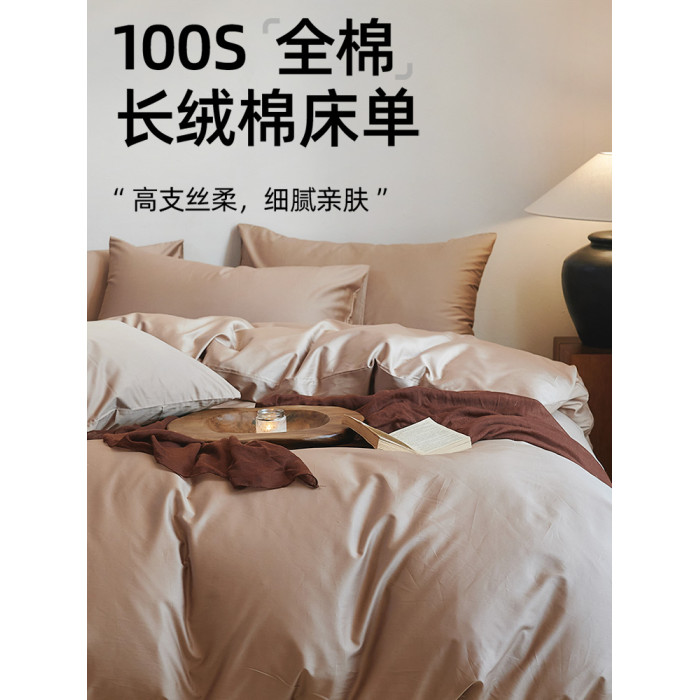 長絨棉家用床單100s全棉抗菌宿舍專用被單高支高密簡約純色三件套