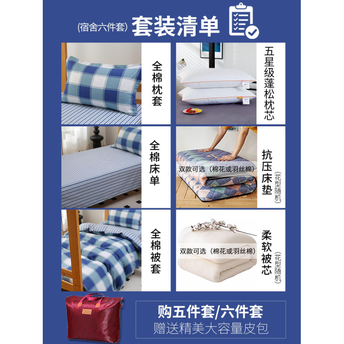 宿捨床標配(六件套)床單款三件套+枕芯+6斤羽絲棉被芯+床墊