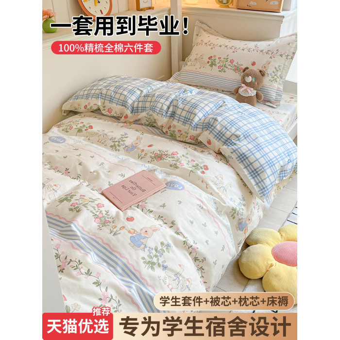 大學生宿舍床上三件套全棉純棉單人床單被罩被子一整套床品六件套