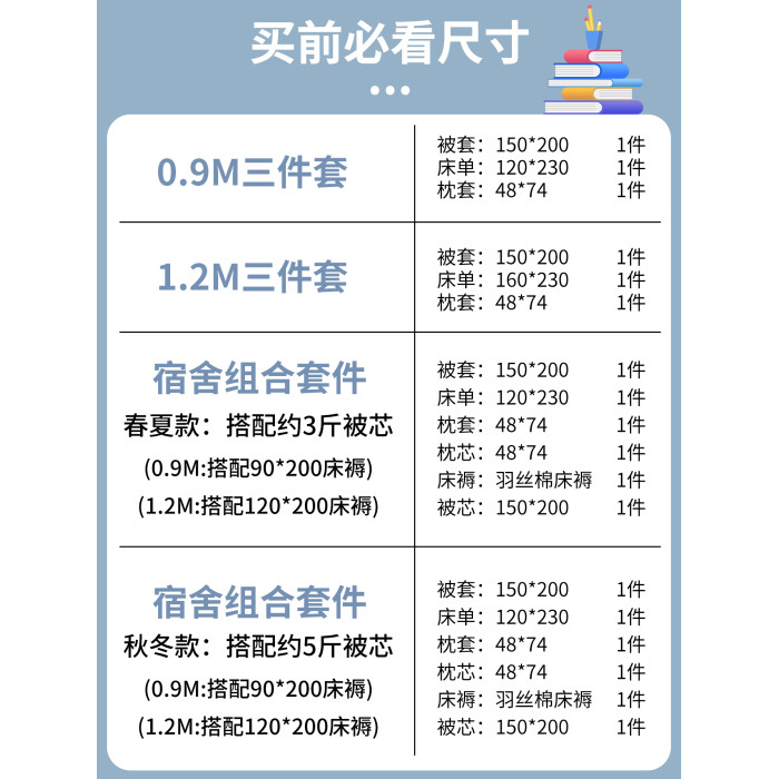 0.9m床單三件套【150x200cm被套+120x230cm床單+枕套】