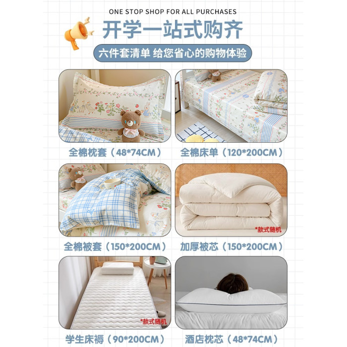 春秋款:1.2m床笠六件套【三件套+約3斤被芯+枕芯+120*200cm床褥】