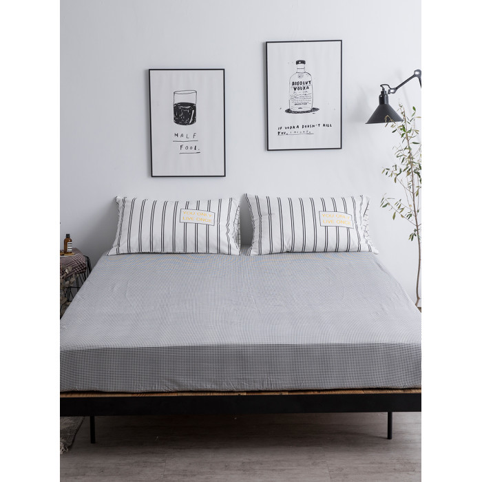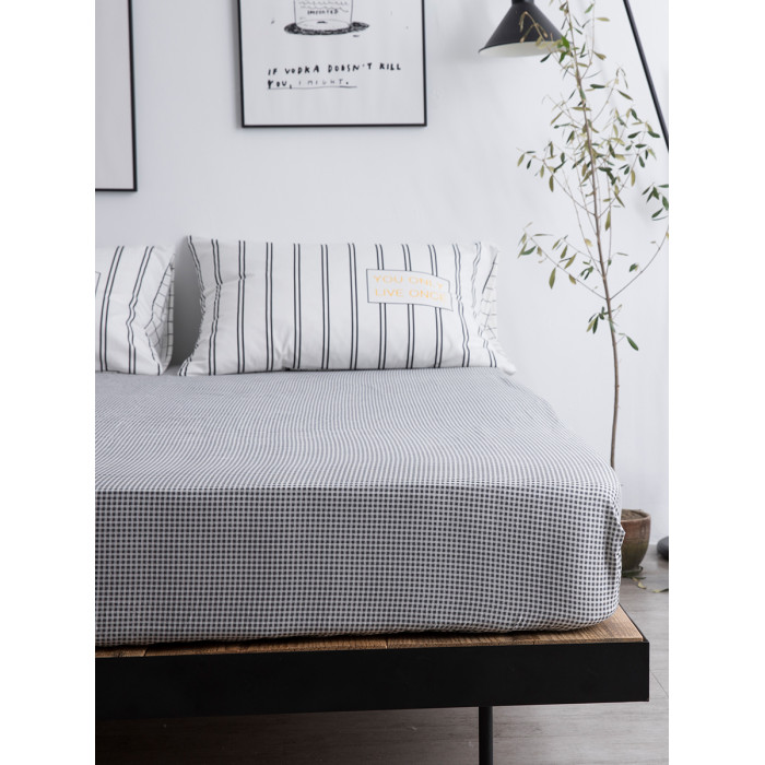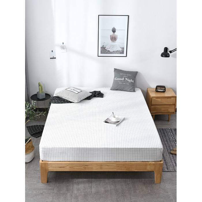 簡約百搭黑色格子純棉床單單件春夏學生宿舍全棉1.8m雙人床笠床品