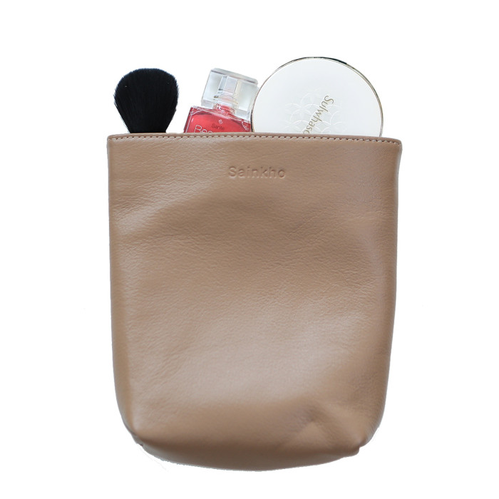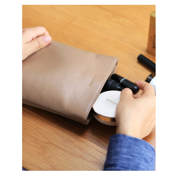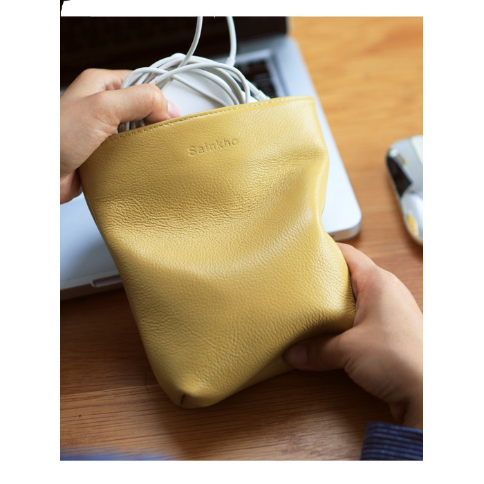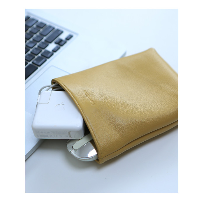 山叩真皮化妝包蘋果電腦電源線收納包姨媽巾包牛皮襍物袋旅行收納