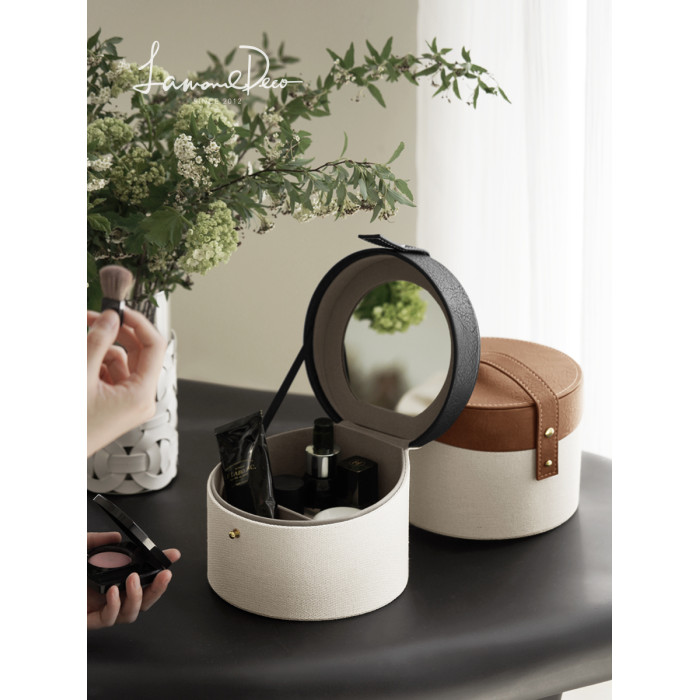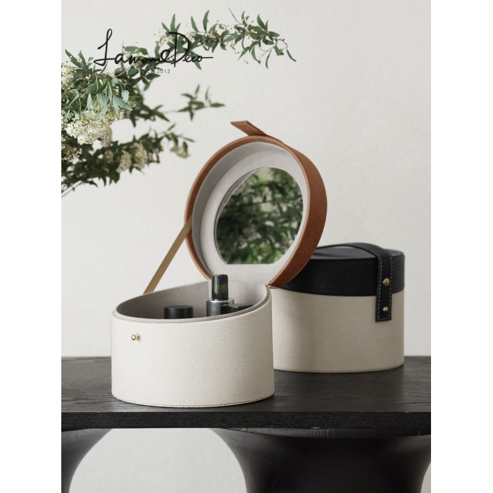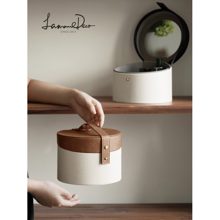 LamomeDeco輕奢帶鏡子手提化妝包首飾襍物收納桶高級化妝品收納盒