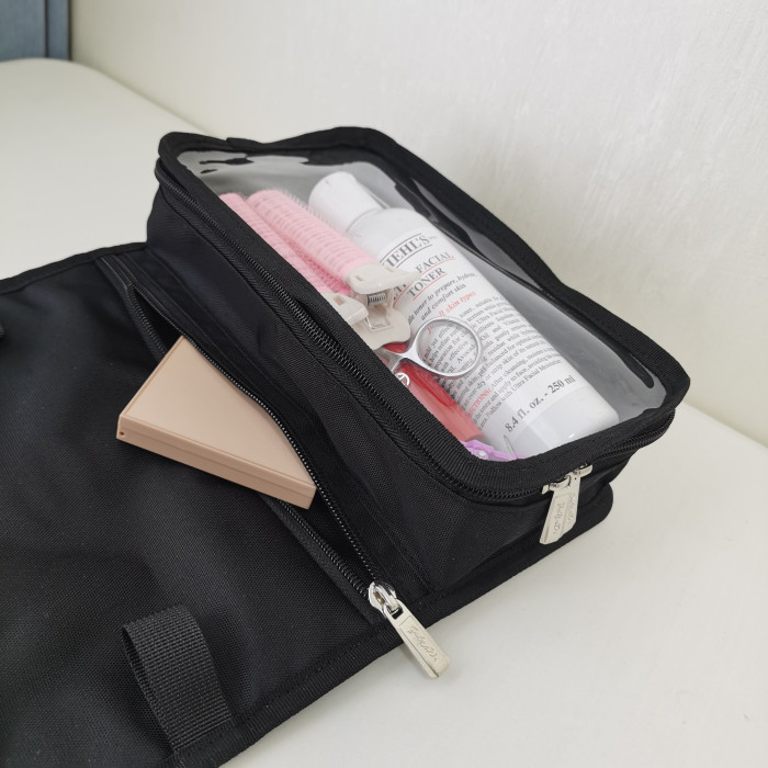 馥雅迪三折化妝包專業化妝量化妝品收納包跟妝補妝包黑色箱內包