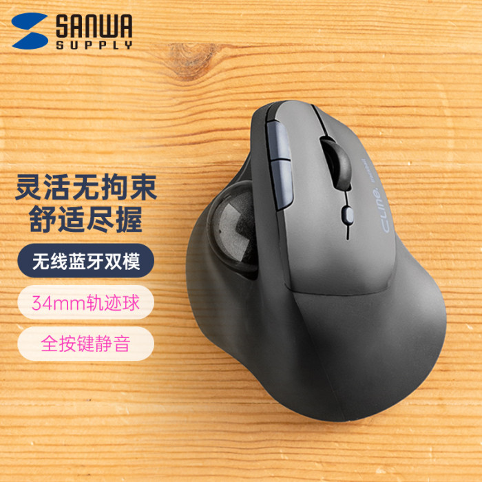 日本山業SANWA無線藍牙軌跡球滑鼠靜音人體工學雙模充電垂直CAD