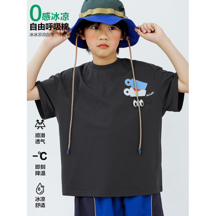 阿噗兒童印花短袖T恤2025夏季新款親子裝上衣中大童排汗男女童裝