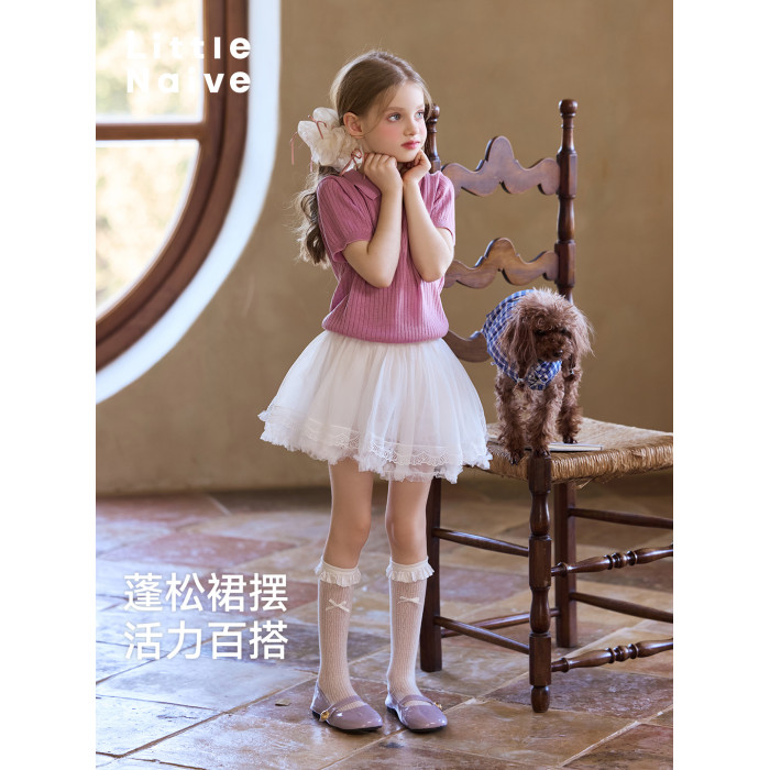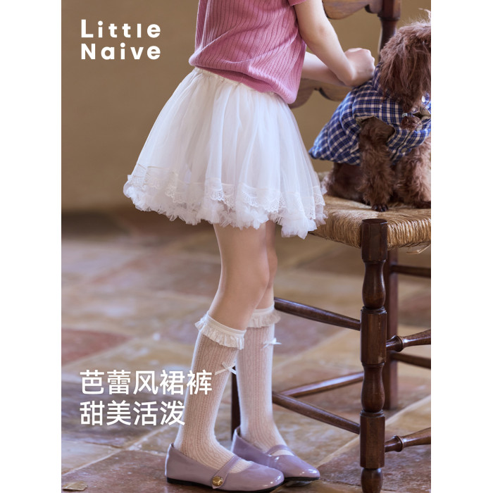 Little Naive女童半身裙夏季新款甜美花邊蓬蓬裙兒童芭蕾風短裙